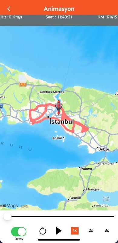 Seçtiğiniz tarih aralığında ister her sürüşü ayrı ayrı istersenizde o gün gerçekleşen tüm sürüşü tek parça halinde Animasyon olarak görebilirsiniz.