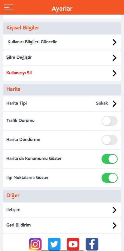 Harita' da Konumumu Göster( Ana menüde yer alan Harita üzerinde Mavi nokta ile konumunuzu gösterir),