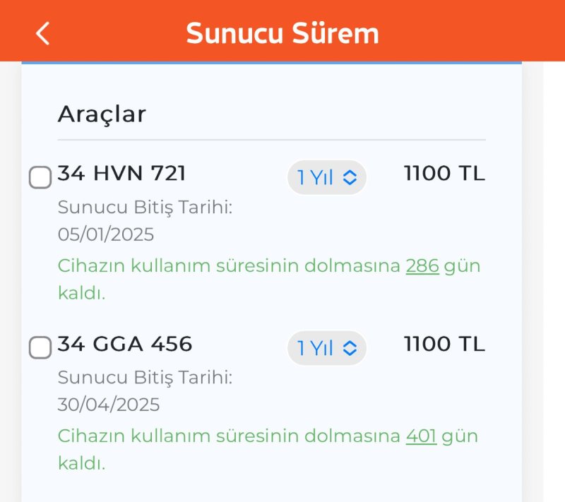 Bu bölümde sunucu sürelerinizden kalanı görebilirsiniz. Dilerseniz Motosikletiniz özelinde sunucu sürenizi uzatabileceğiniz satın alma ekranı bulunmaktadır. İlgili plakayı seçerek ve gerekli bilgileri doldurarak bu kısımdan satın alma ile hizmet sürenizi uzatabilirsiniz.